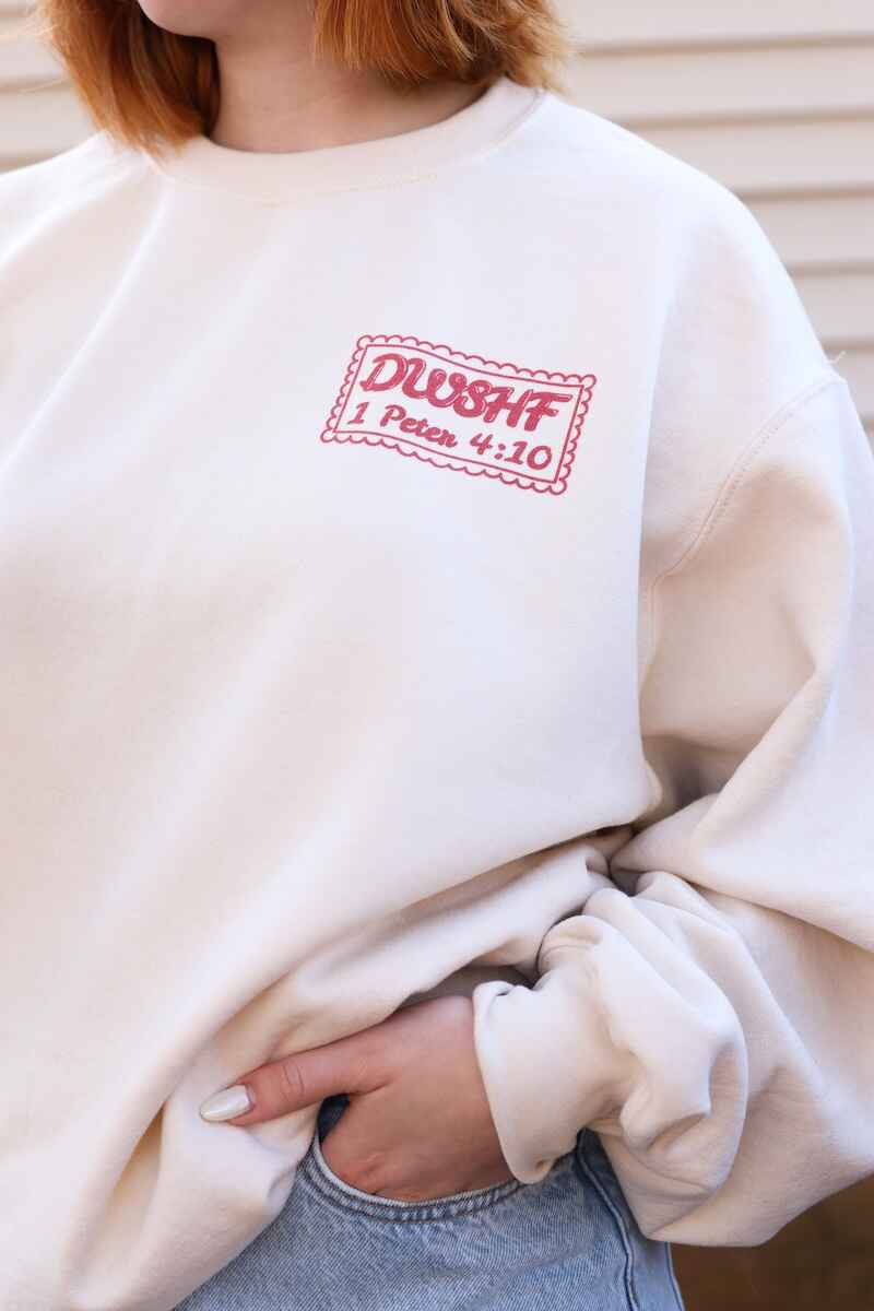 Our Hearts on Fire sweatshirt crew is a simple reminder to lead with love. The hand-drawn designs highlight the DWSHF areas of service, benevolence, missions, and relief in a fun, meaningful way. It’s soft, comfortable, and easy to throw on while sharing what matters most.