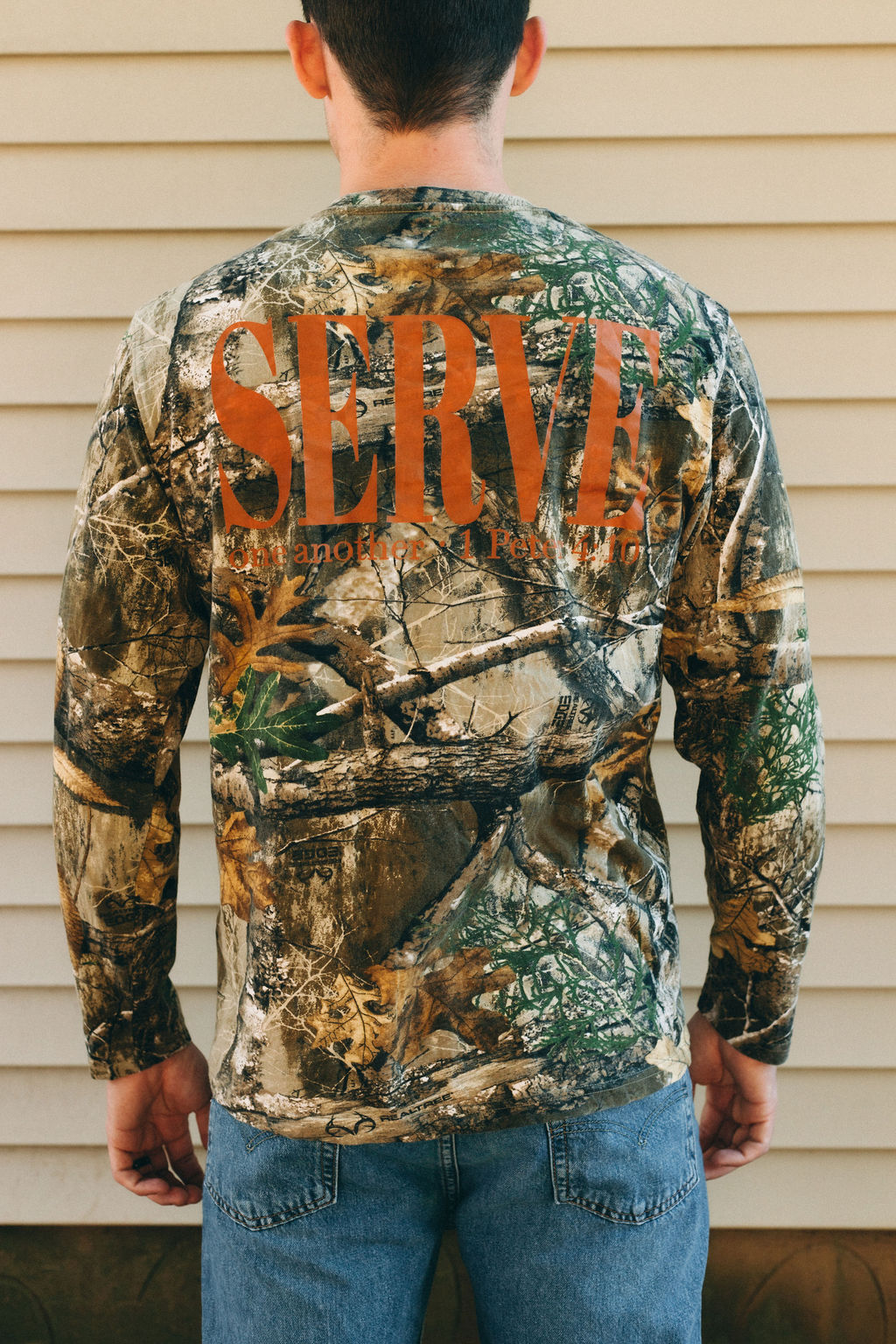 Stay warm, stay ready, and serve with purpose. This Realtree long-sleeve tee combines rugged outdoor style with bold faith—featuring “SERVE” on the back and 1 Peter 4:10 as a reminder to use your gifts to serve others.